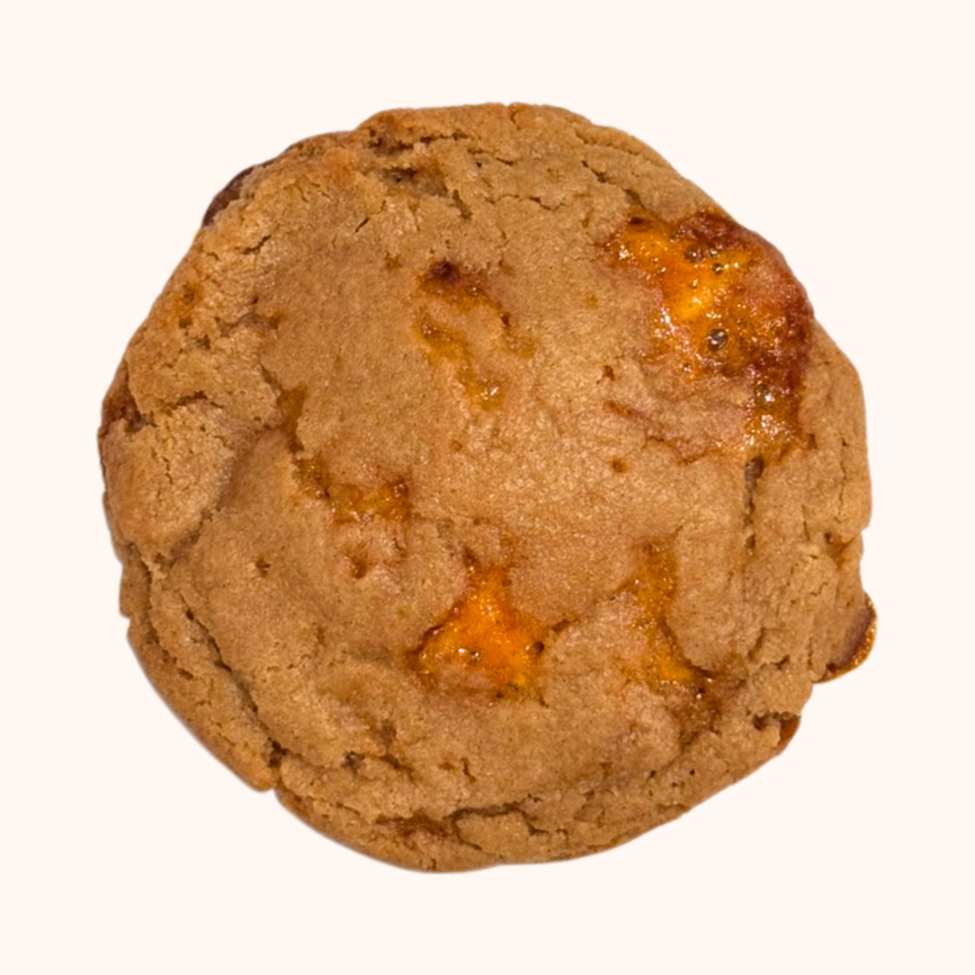 A cozy winter seasonal, reimagined the UMAI way. This is our signature apple pie cookie. This cookie is infused with fresh apple cider to capture that deep, authentic apple flavor. We fold in cinnamon and shards of our housemade crisp honeycomb toffee for caramel warmth and a subtle crunch—just like the top of a perfectly baked pie. It's apple pie in a cookie, and we recommend warming it up for a perfect cozy dessert!
